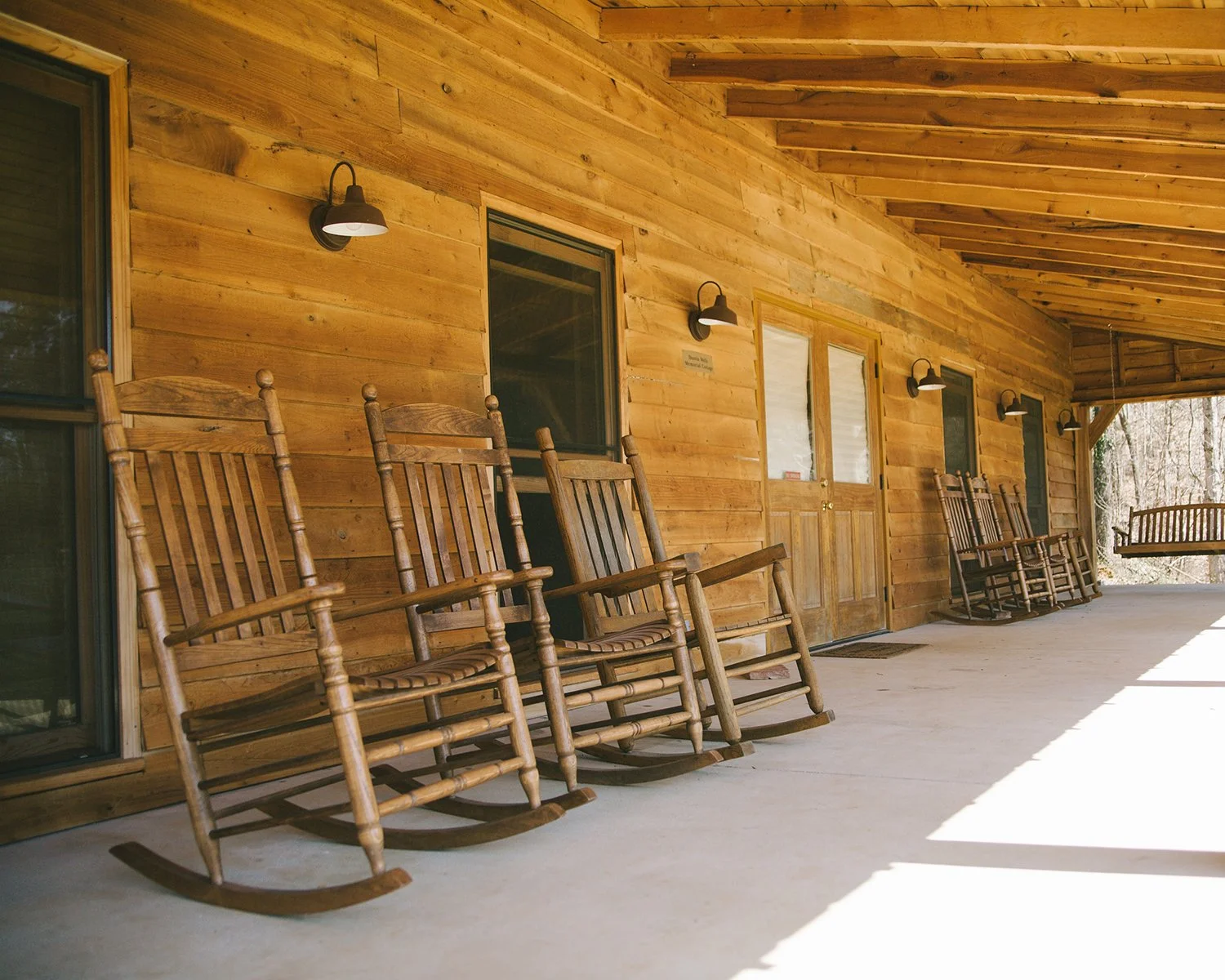 The Virginia Waller Ministry and Conference Center is the largest individual facility with the capacity to sleep 60 people and is open year round. The full kitchen and multiple refrigerators provide your group enough space to cook, serve and eat together on the basement level. Sit back and relax on the back porch as you overlook the Caney Fork River.